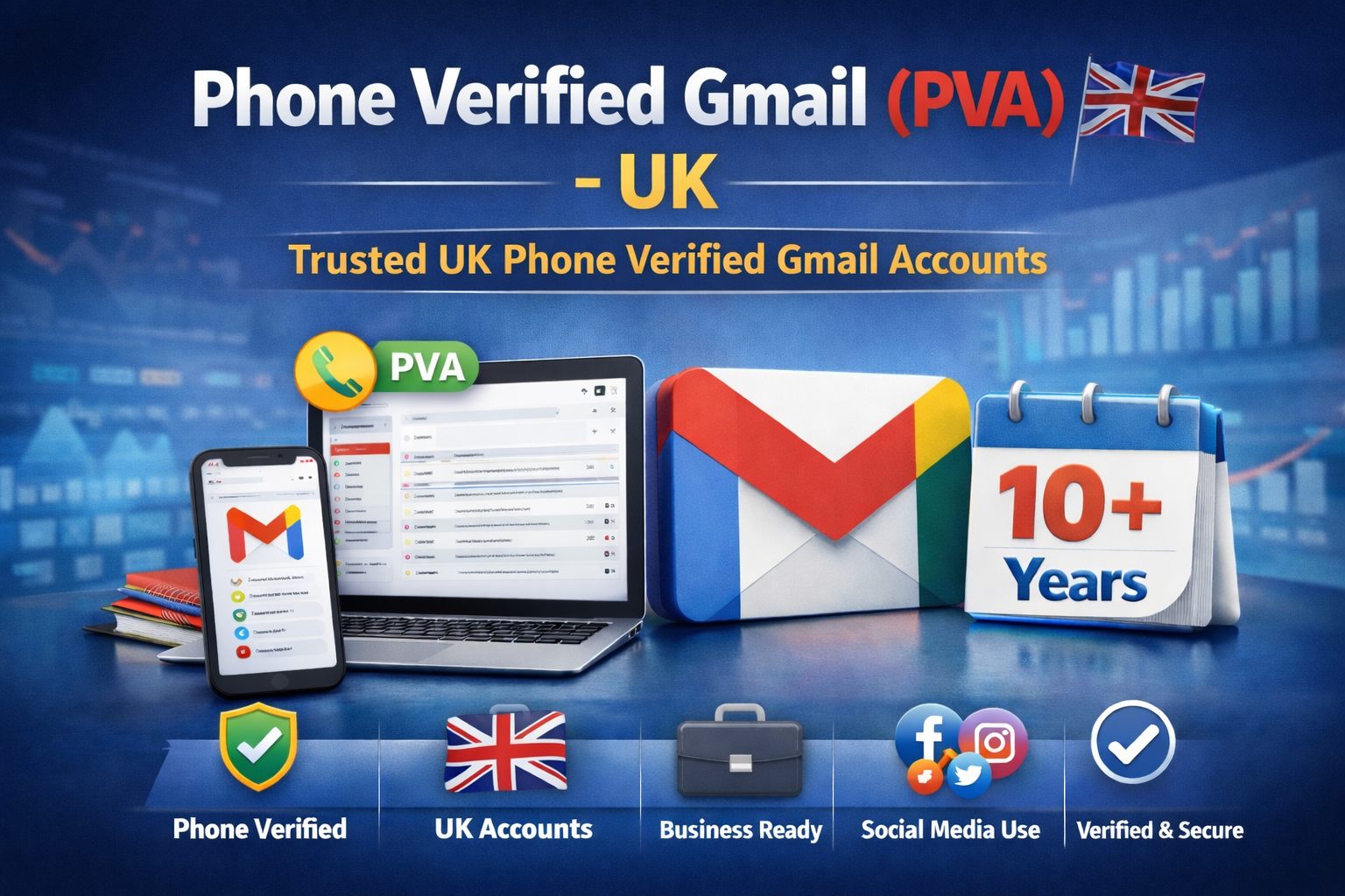 Phone Verified Gmail (PVA) – UK accounts are Gmail accounts that have been verified using a valid United Kingdom phone number during the registration process. These accounts are widely used by digital marketers, agencies, and businesses that require reliable and trusted email accounts for various online platforms.